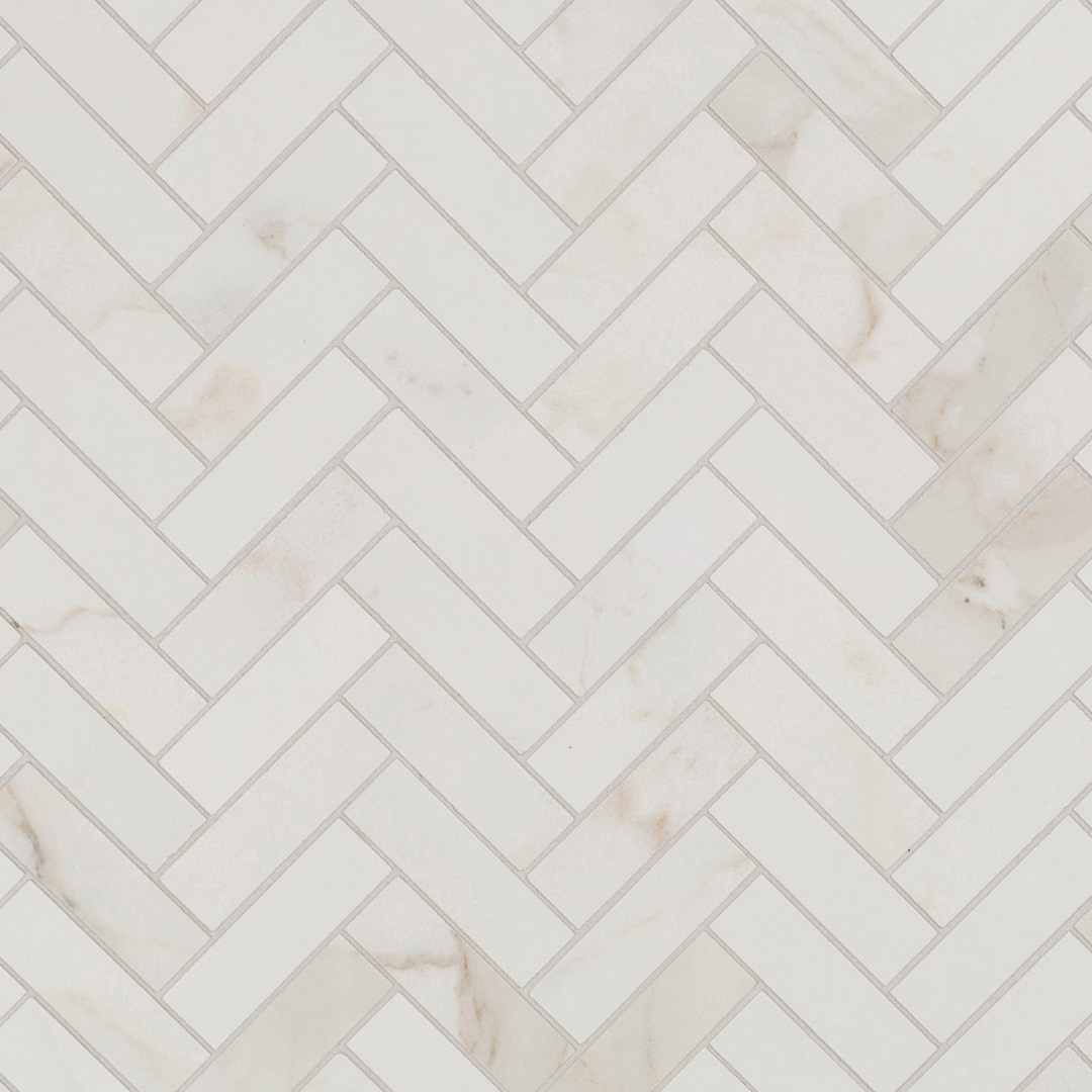 Calacatta Porcelain White Herringbone 1x3 Matte